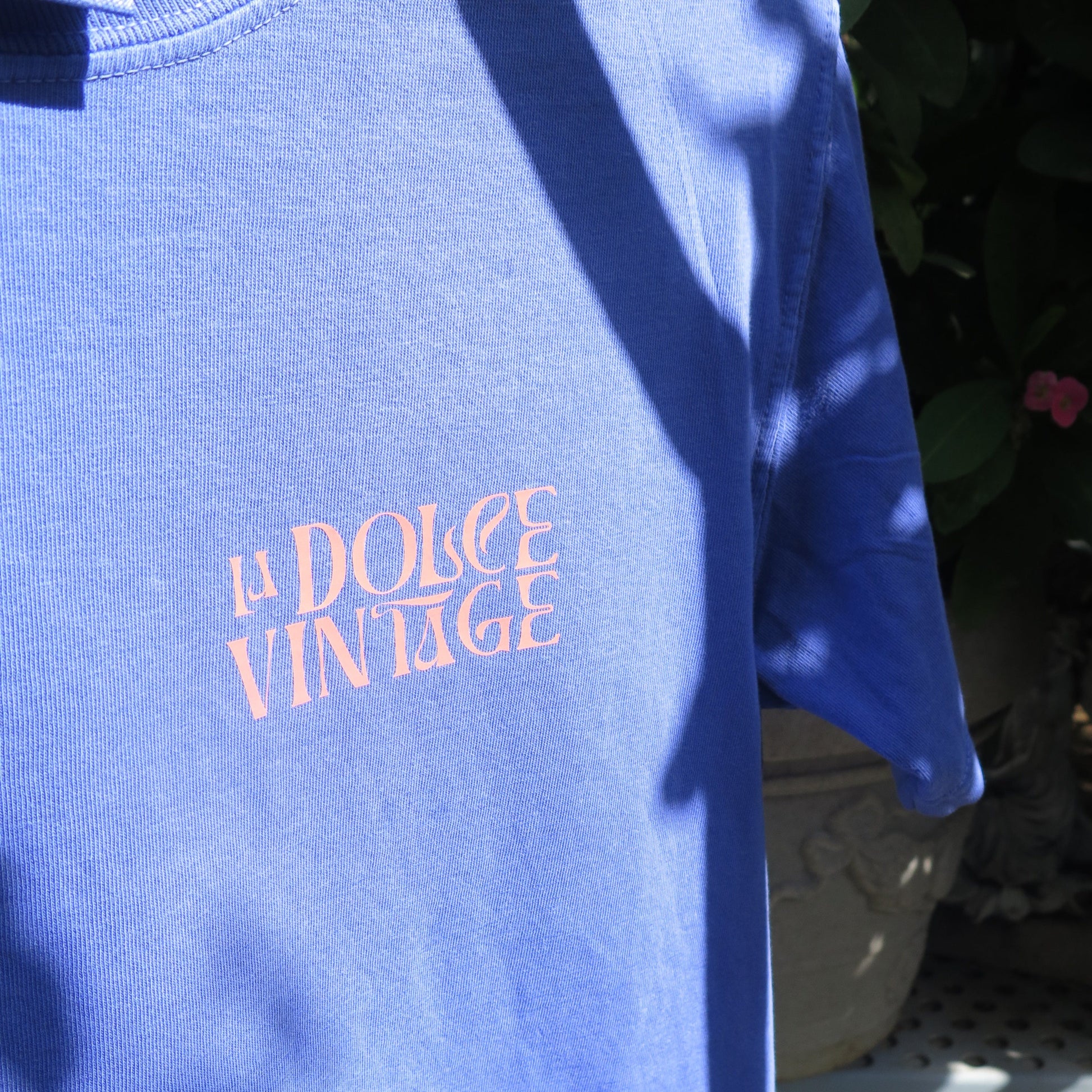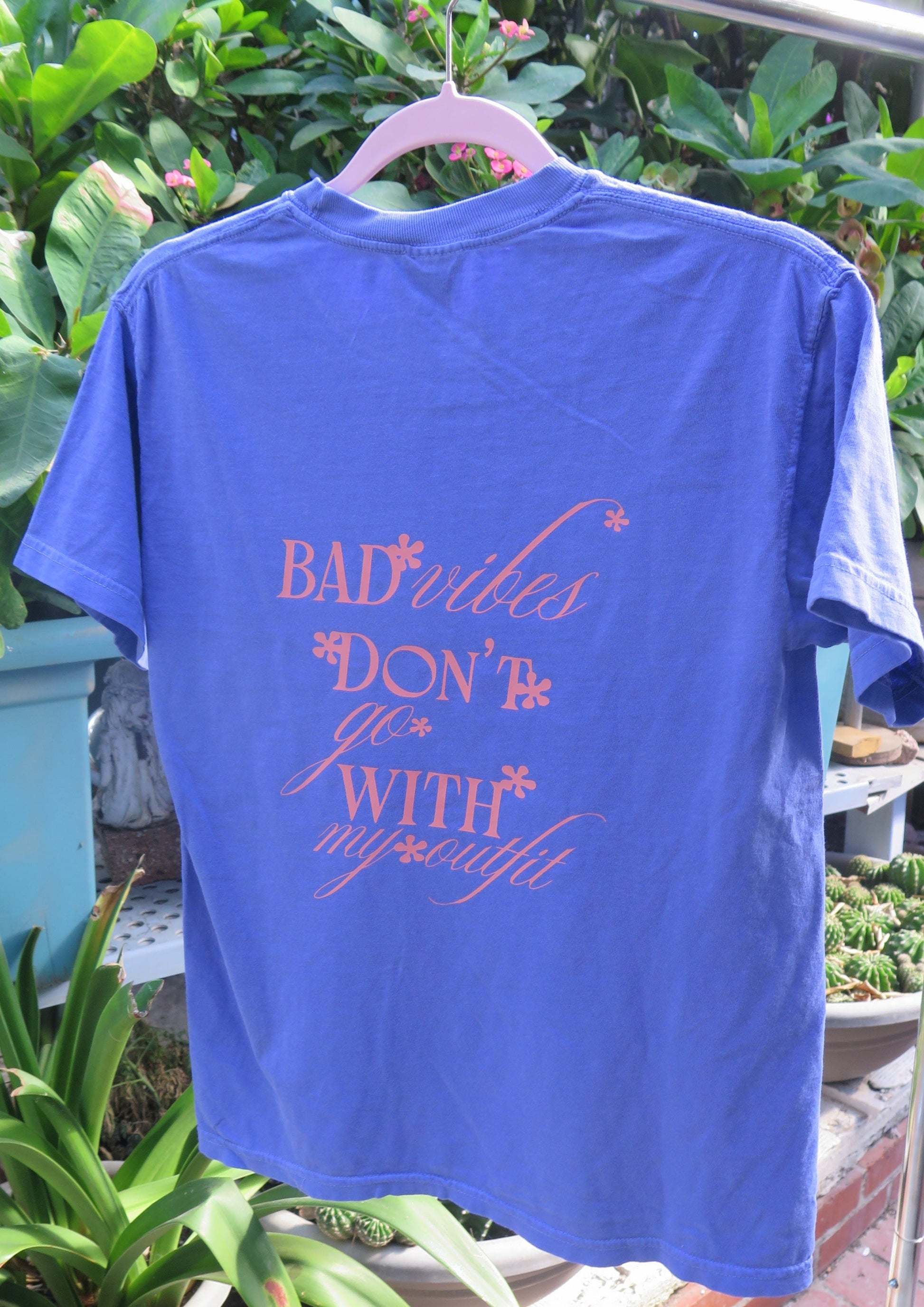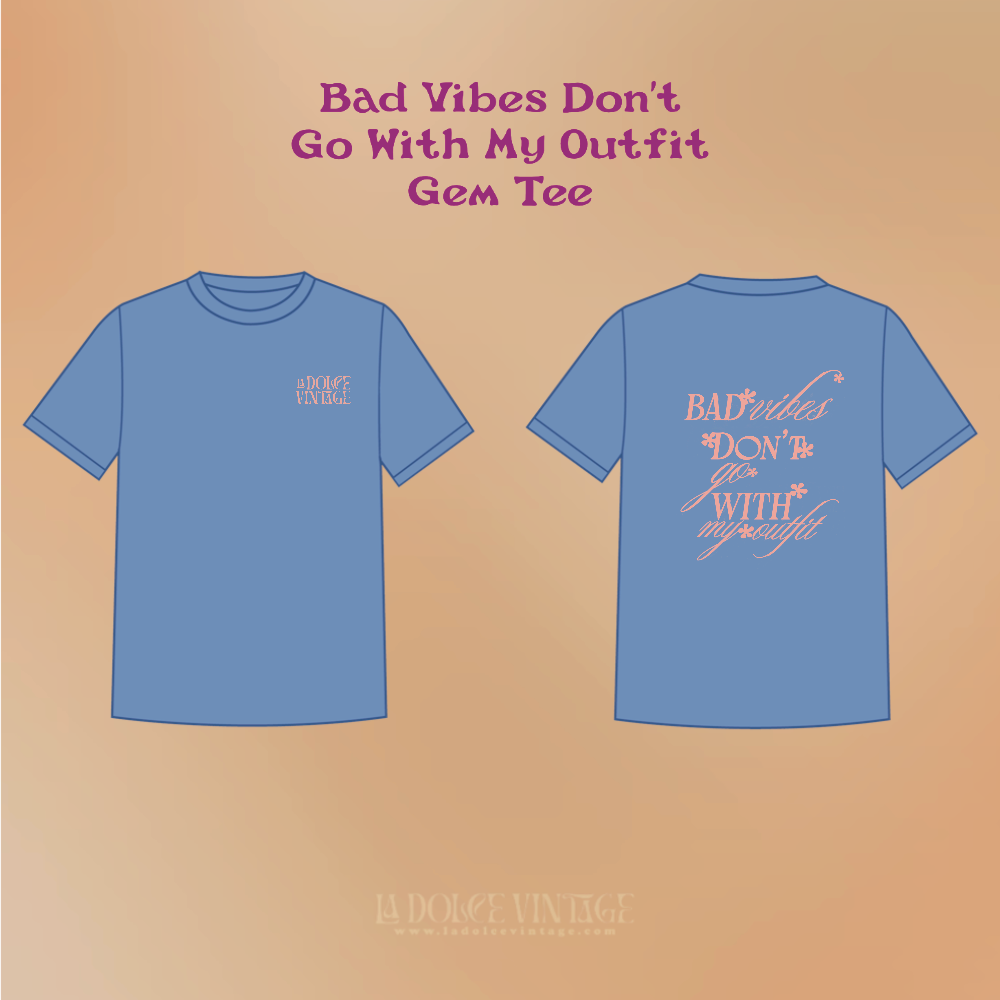 “Bad Vibes Don’t Go With My Outfit” is our daily mantra for keeping every look bright and cheerful! Our Periwinkle gem tee, paired with Melon Pink lettering, makes a playful, effortless statement, its totally La Dolce Vintage!